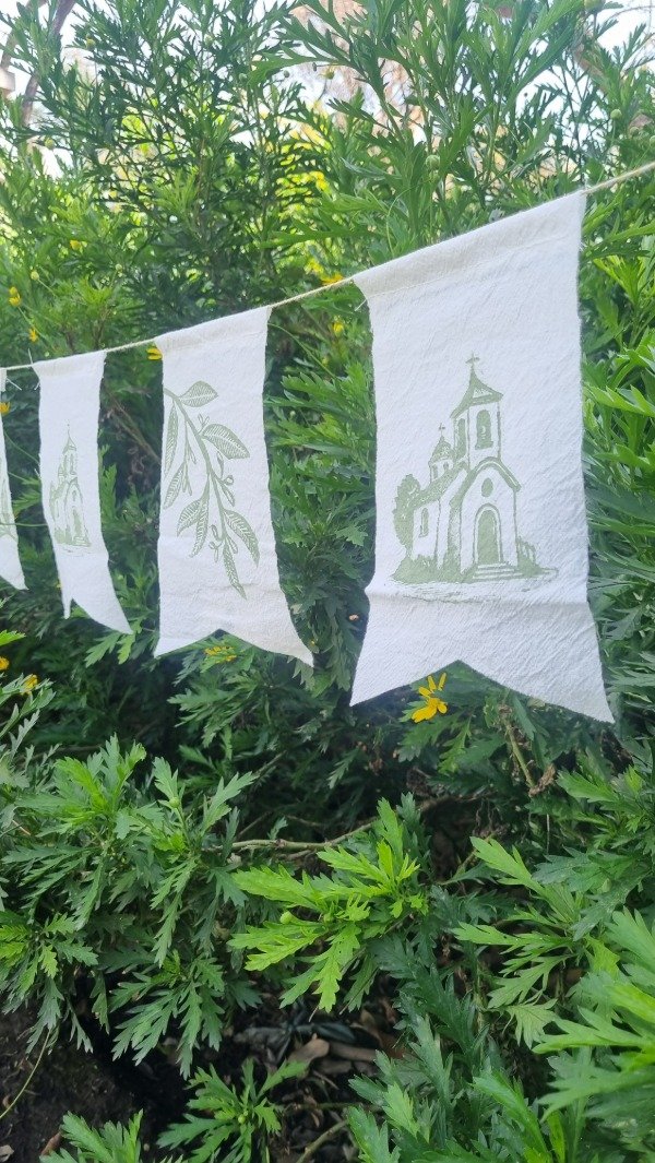 Banderines en tela tusor estampado en diferentes motivos. Ideal para decorar un galería, cumple, bautismo o comunión.